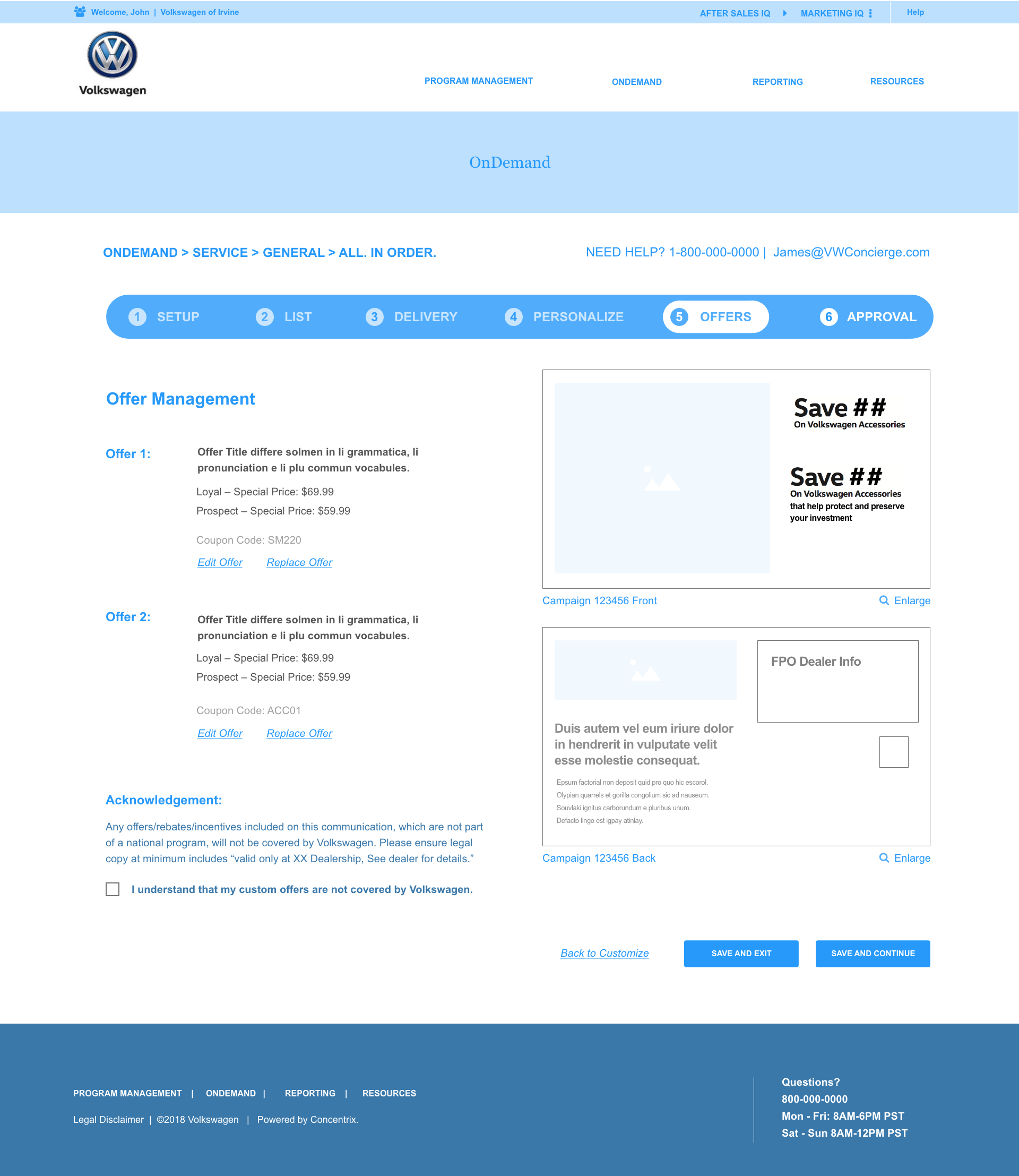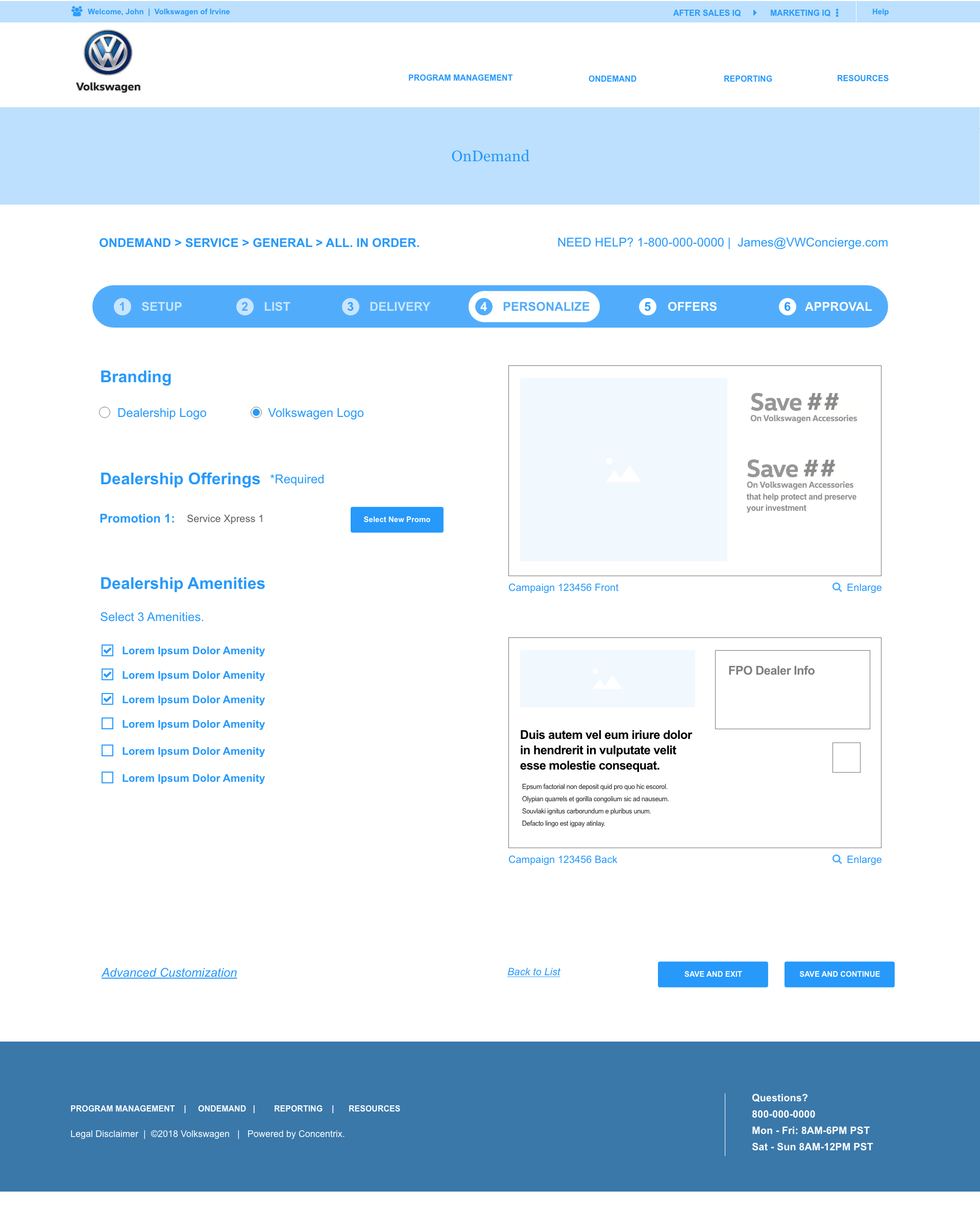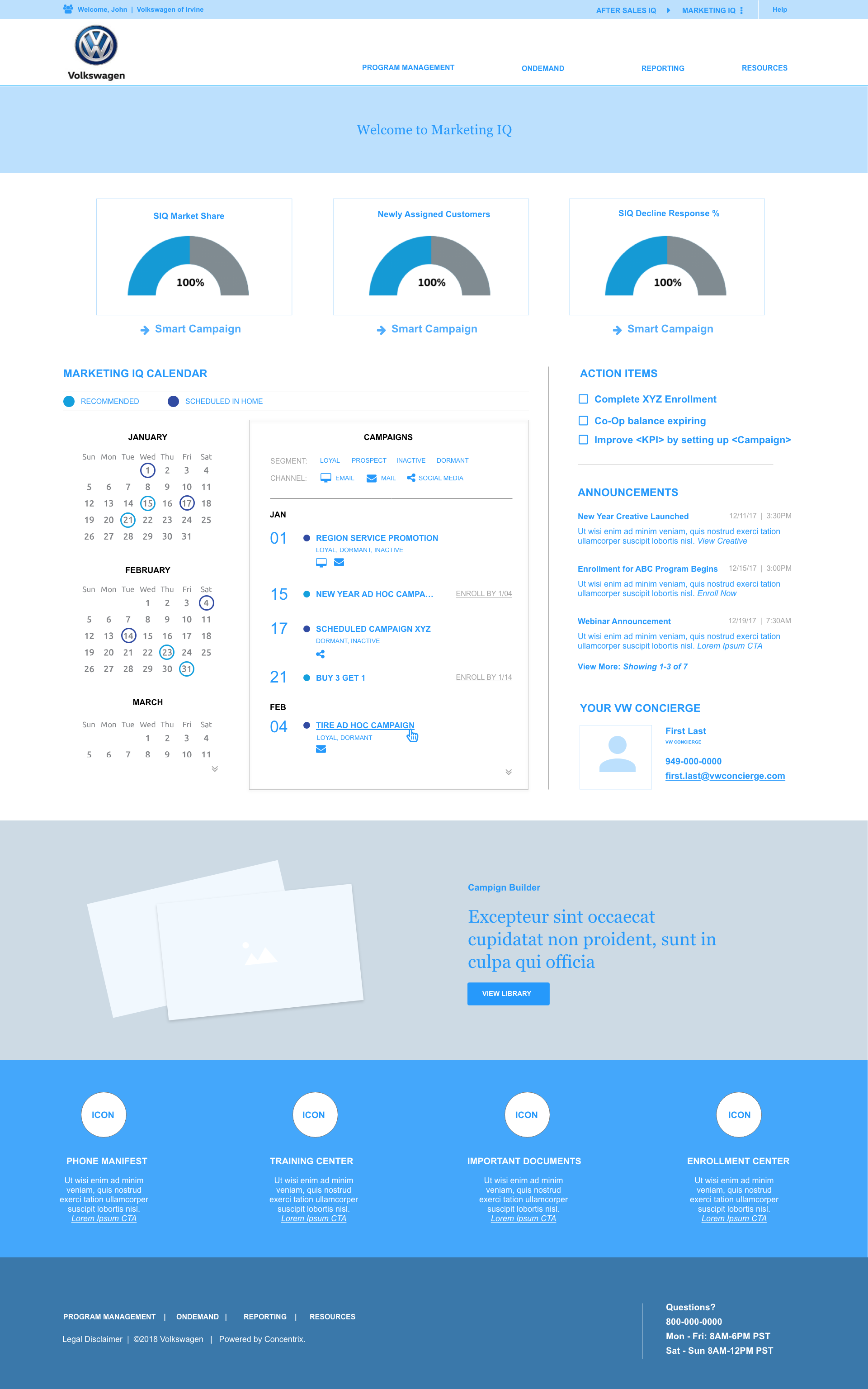Wireframes for Volkswagen's dealer-facing marketing portal.