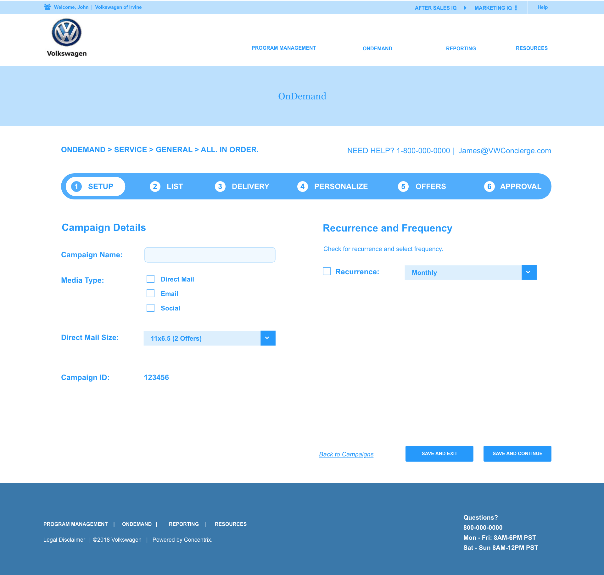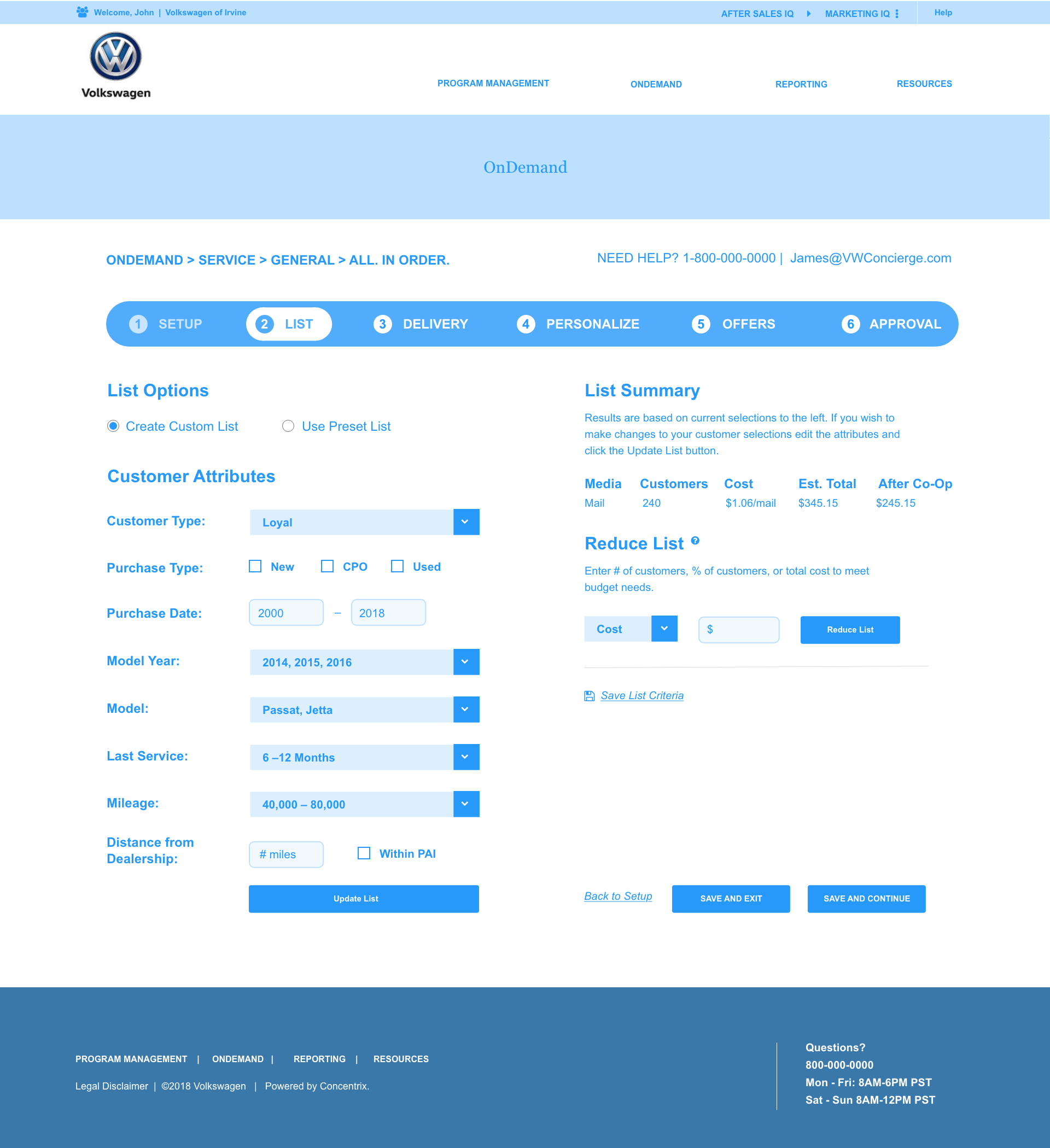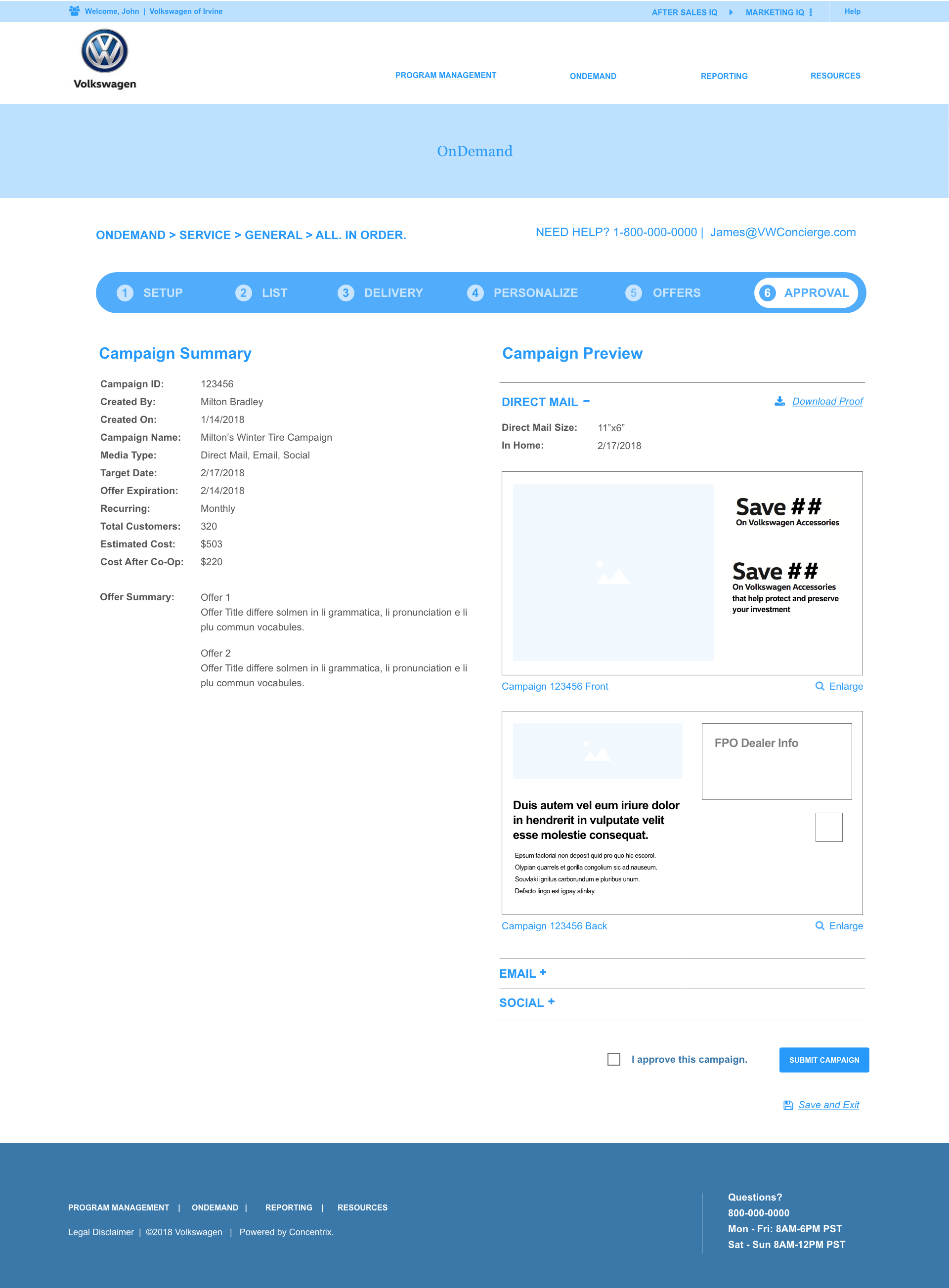 Wireframes for Volkswagen's dealer-facing marketing portal.